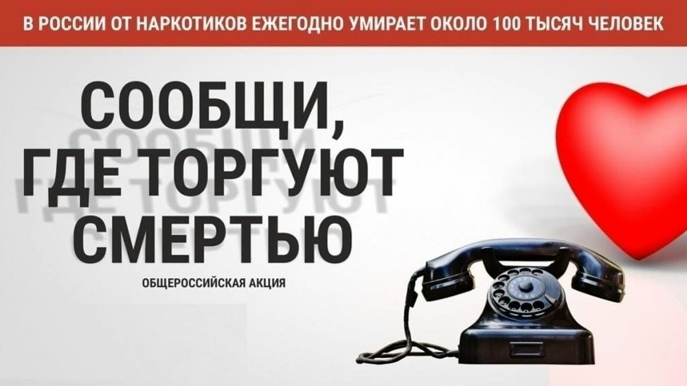 В период с 20 апреля по 1 мая 2026 г. на территории Тульской области планируется проведение первого этапа Общероссийской антинаркотической акции «Сообщи, где торгуют смертью», организованной по инициативе МВД России.